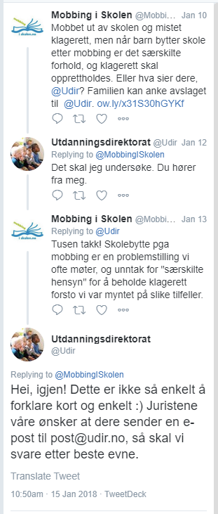 Vi mottok følgende svar 2. mars 2018: